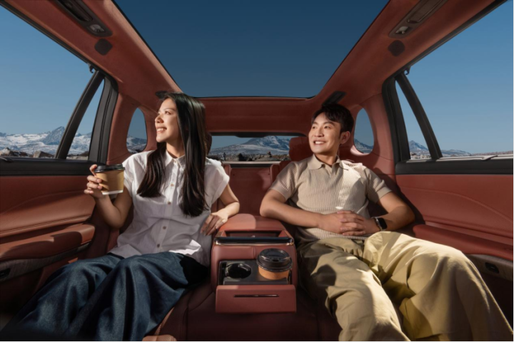 针对母婴家庭的细节设计很贴心。配备“母婴模式”,开启后自动关闭外循环,开启净化系统和低风量空调,避免冷风直吹孩子;副驾座椅可完全放倒,搭配定制婴儿床配件,形成平整的婴儿休息区,材质与座椅同标准,无需担心甲醛问题;车内无尖锐棱角,所有储物盒均有软胶包裹,防止孩子磕碰。